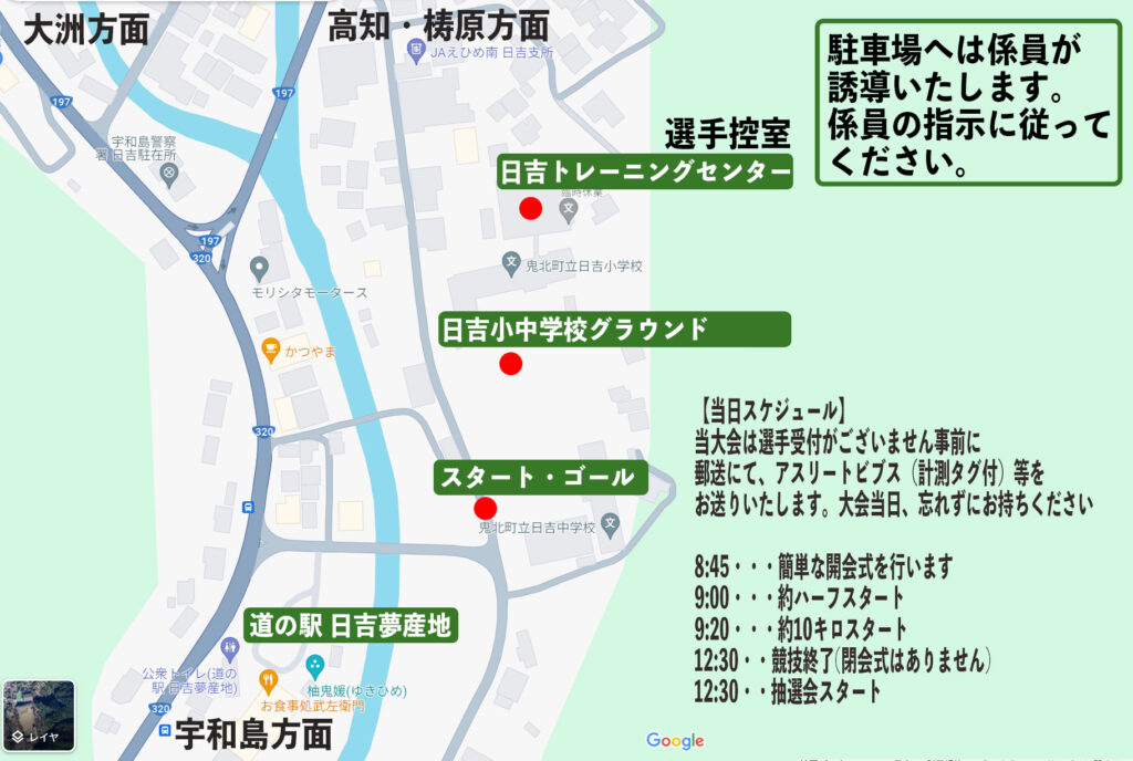 | 8:45 | ハーフスタート15分前にスタート地点(夢産地第2駐車場)にて簡単な開会式を行います |